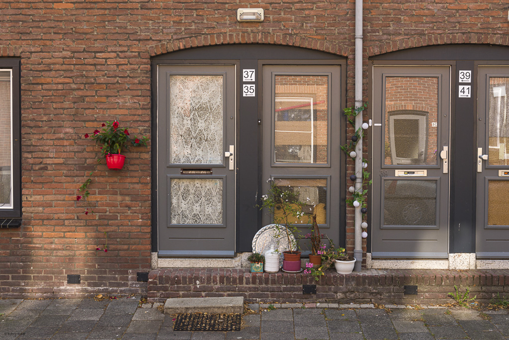In de Kievitstraat kwam ik een druk balkonnetje tegen met een parasol en